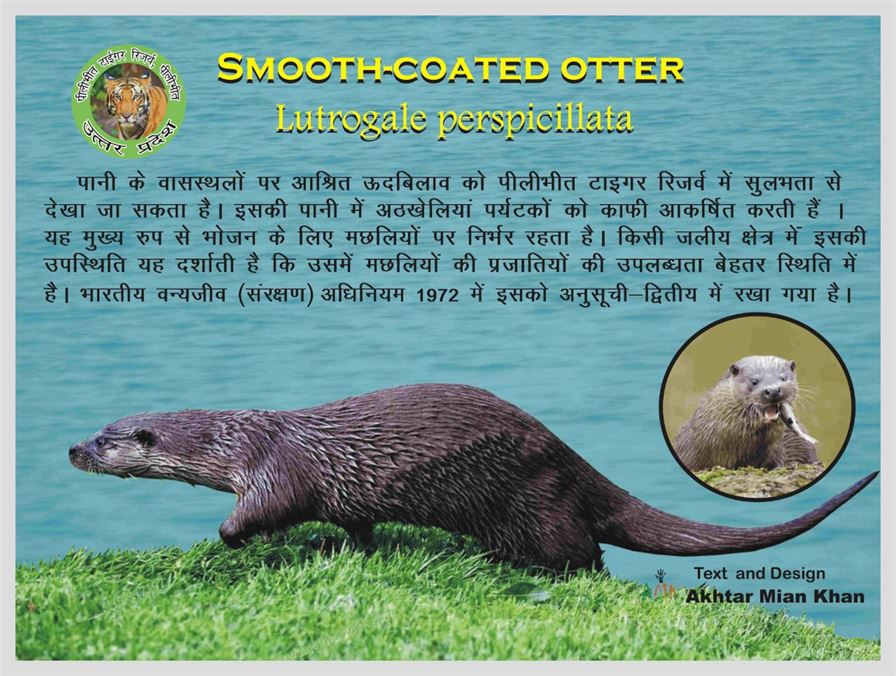 The otters that depend on water habitats can be seen in the Pilibhit Tiger Reserve with its water sports attracting tourists. It mainly depends on fishes for food. Its presence in an aquatic area indicates that the availability of fish species is in a better condition. The Indian Wildlife (Protection) Act 1972 is laid down in ISRO Schedule-II.