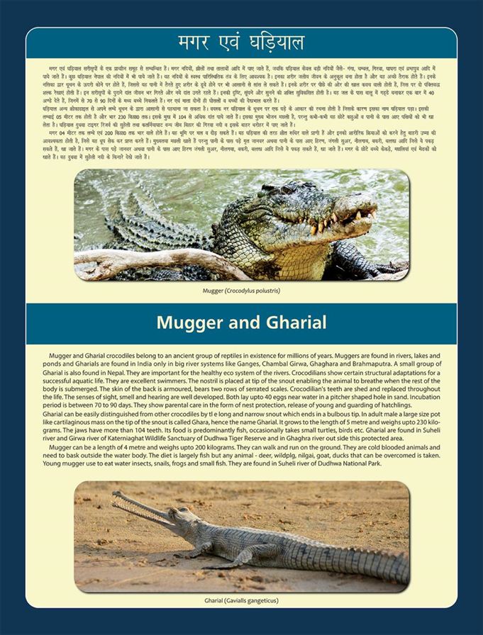 The habitat has rich faunal diversity, having 5 out of 7 deer species found in the country. Besides, there are some critically endangered species such as the Bengal florican and his As many as 13 species of mammals, 9 species of birds and 11 species of reptiles/amphibians found in the reserve are endangered and listed in the Schedule I of the Wildlife (Prot Act, 1972. The major faunal species are Royal Bengal Tiger, leopard, fishing cat, leopard cat, swamp deer, spotted deer, hog deer, barking deer, blackbuck, sambar, sloth bear, fox, short-nosed fruit bat, Indian common yellow bat, painted bat, rhesus macaque, common langur, porcupine, small Indian civet, jackal, Indian fox, hyena, rattle. As many as 450 birds have been observed which includes a large number of residents. The common resident birds include darter, lesser whistling duck, combed duck, grey partridge, black partridge swamp partridge, peafowl, red jungle fowl, cormorants, egrets, herons, 3 species of hornbill, 6 species of eagle, Saras crane and several others. Reptiles are well represented with lizards, several species of snakes, freshwater crocodile and Gharial. The river system harbor around 79 species of fishes.